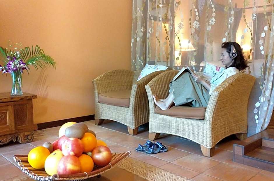 One-Bedroom Villa features an outdoor spa bath and wading pool. Spacious villa includes living and dining areas. A flat-screen cable TV and refrigerator are provided. Guests have free access to a lounge, where free food and beverages are served.